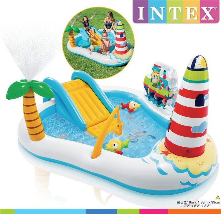 این پارک بادی دارای یک برج دریایی،سرسره بادی،ابنما و چوب ماهیگیری می باشد.یک درخت بادی در گوشه این استخر تعبیه شده که که روی آن بصورت فواره می باشد.جهت فعال نمودن این فواره کافیست که اتصال آن را به شیلنگ آب متصل نمایید و فشار آب را به میزان لازم تنظیم نمایید.در صورتیکه فشار آب بیش از اندازه استاندارد باشد می تواند به اتصالات آن آسیب بزند. یک چوب بادی ماهیگیری نیز درون بسته بندی وجود دارد که کودکان میتوانند با آن یک ماهیگیری بصورت کودکانه را تجربه نمایند.دو عدد ماهی رنگی و زیبا نیز درون بسته بندی محصول برای همین امر قرار داده شده. سرسره بادی زرد رنگ که در پارک بادی تعبیه شده زیبایی و هیجان را در این محصول دوچندان کرده.6 عدد توپ رنگی درون این محصول قرار داده شده که کودکان میتوانند با آن خود را مشغول به بازی نمایند. ترکیب رنگ بکار رفته در این پارک بادی برای کودکان بسیار شاد و لذت بخش است. جهت حفظ ایمنی و طول عمر محصول 2 نکته مهم را می بایست رعایت کرد.ابتدا سعی کنید حتما و حتما برای زیر محصول از یک کف پوش مناسب و یا یک زیرانداز مناسب استفاده نمایید که محصول دچار آسیب دیدگی از قسمت کف نشود.دوم اینکه برای باد کردن محصول حتما سعی شود از پمپ باد های شرکت اینتکس استفاده شود.این پمپ باد ها دارای دریچه های مخصوص هستند و برای همین محصولات طراحی و ساخته شده اند.باد کردن این وسایل با کمپرسورهای باد (بعلت فشار باد زیاد) میتواند آسیب جدی به محصول بزند. ضخامت هر یک از لایه های این محصول 0.28 میلی متر است که باعث شده این استخر به راحتی آسیب نبیند. همچنین جنس کف این محصول بادی نیز تحمل وزن بالایی داشته و آسیب دیدگی را به حداقل رسانده است. این کالا مناسب برای کودکان بالای دو سال بوده و به راحتی توسط یک پمپ باد که قابل خریداری از فروشگاه اینتکس است، راه اندازی می شود. استخر بادی کودک طرح فانوس دریایی یک محصول تمام عیار و کاربردی بوده که دارای سرسره، چند عدد توپ بادی و چوب ماهی گیری است تا با استفاده از آن ها ساعت ها کودک شما را شاد کند.