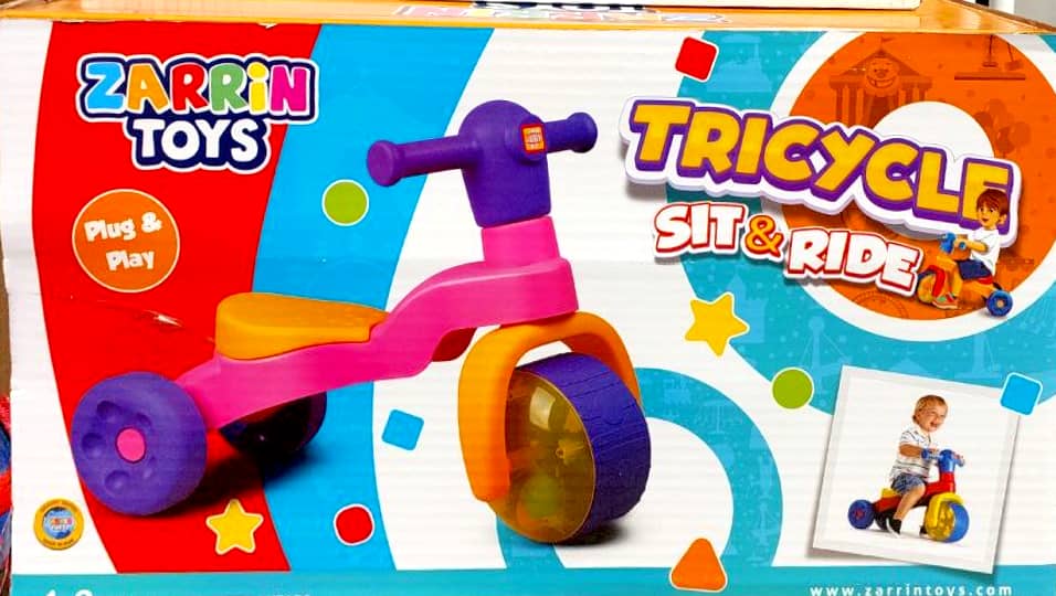 درون چرخ جلویی، توپهای رنگی دارد که ضمن حرکت، توپها میچرخند. توپهای رنگی که در جلوی این سهچرخه قرار دارند، باعث جلبتوجه کودکان خواهند شد