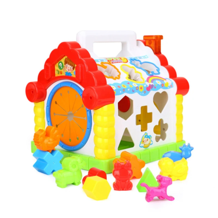 کلبه شادی هولی تویز از چند بخش مختلف تشکیل شده است که در وجوه مختلف این کلبه کار شده اند. یکی از وجه های کناری کلبه جاگذاری اشکال است. بلوک های این بخش شامل حیوانات و اشکال میباشد که در حین بازی به کودک کمک میکند تا اسامی اشکال و حیوانات را نیز بیاموزد. در کنار این وجه و در پشت کلبه دریچه ای فانتزی تعبیه شده که به کودک امکان میدهد تا بدون دیدن قطعات دست را داخل فضای کلبه نموده و بلوک ها را خارج نماید. با استفاده از این دریچه میتوان بازی حدس شکل بلوک ها را نیز با کودک انجام داد. در وجه دیگر کلبه ورودی های دیگر برای بازی جاگذاری وجود دارد. در قسمت پایین این وجه پنج قطعه شش وجهی در کنار هم تشکیل یک عبارت ریاضی را میدهند که میتوان به کمک آنها اعداد و علایم ریاضیات مقدماتی را به کودک آموخت. یک چرتکه کوچک تک میل هم در قسمت پایین همین مهره ها برای کمک به این بخش طراحی شده است.در پایین این چرتکه یک ارگ کوچک هشت کلیده جاگذاری شده است که یک فضای موزیکال و بانشاط را در اختیار کودک قرار میدهد. دکمه تنظیم سطح صدا نیز در کنار همین دکمه ها تعبیه شده است.در قسمت مقابل کلبه شادی هم در ورودی کلبه با کلید و دو بازی حرکتی برای تقویت ماهیچه های کوچک کودک طراحی شده است.این بازی به طور مشخص بر مهارت های فیزیکی و حرکتی مربوط به ماهیچه های کوچک، مهارت های دیداری، هماهنگی چشم و دست، مهارت شنیداری، توسعه حس لامسه و مهارت موسیقیایی کودک موثر است.