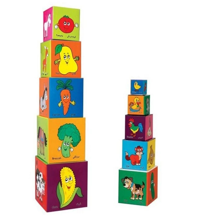 متاسفانه این کالا در حال حاضر موجود نیست. میتوانید از طریق لیست بالای صفحه، از محصولات مشابه این کالا دیدن نمایید.این محصول شامل 10 مکعب در 10 اندازه متنوع می باشد که به کودک کمک می کند تا با روی هم چیدن مکعب ها، مهارت های حرکتی، ترتیب و توانایی درک مفهومی خود را گسترش دهد. در وجوه مختلف هر مکعب رنگ ها، حیوانات اهلی، حیوانات وحشی، میوه ها و سبزیجات با نام فارسی و انگلیسی آن ها آمده است که کودک ازاین طریق تناظر و دسته بندی را آموزش می بیند.در ابتدا کودک باید مکعب ها را به ترتیب از بزرگ به کوچک روی هم بچیند و سپس بعد از درک مفهوم اندازه، برجی متشکل از 10 طبقه با دسته بندی های ذکر شده بسازد به گونه ای که در هر وجه آن یکی از موضوعات مذکور قرار گیرد.