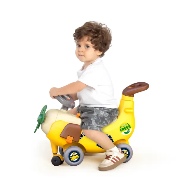 چهار کاربرد در یک وسیله: ترکیب واکر، واکر-رایدر (push & ride)، صندلی سوارشدنی (stroller) و سرسرهی کوچک