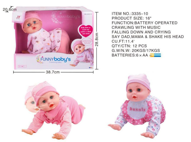 عملکرد راه رفتن چهار دست و پا به همراه آهنگ ، تکان دادن سر و گفتن کلمات پدر و مادر به انگلیسی
